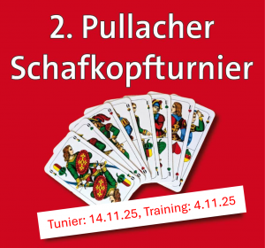Am 14.11.2025 findet das 2. Pullacher Schafkopftunier der SPD statt. Start ist um 19 Uhr im Vereinsheim im Bürgerhaus. Das Startgeld beträgt 10,- Euro und der 1. Platz gewinnt ein Preisgeld in Höhe von 150,- Euro.